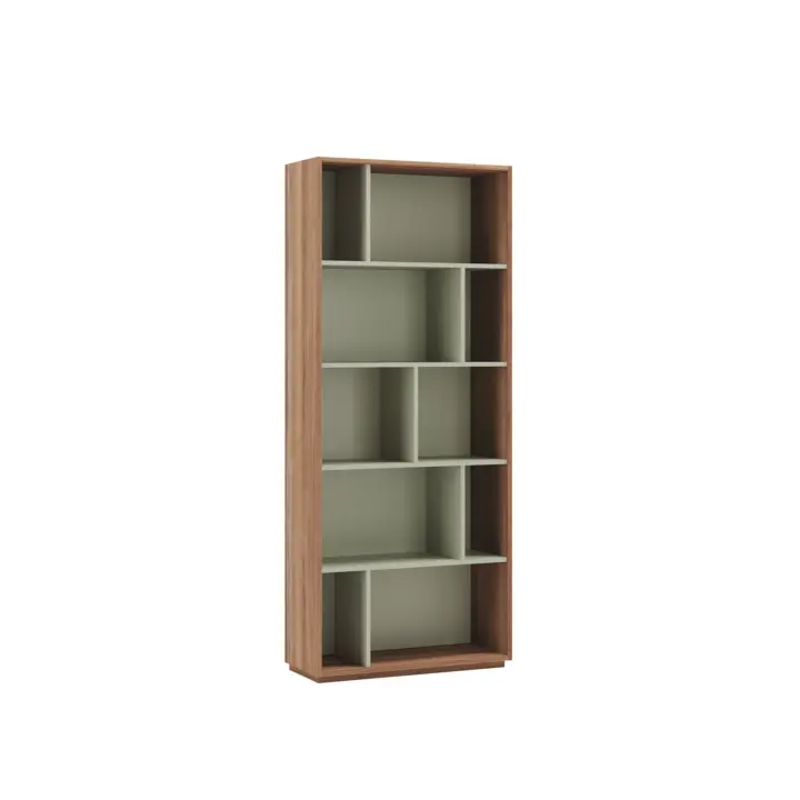 Estantería librería fabricada en melamina con gran capacidad de almacenamiento gracias a los múltiples huecos. El diseño es modular, por lo que se pueden colocar varias librerías juntas, ya sean del mismo modelo o de distinto, dentro de la colección de NACK.