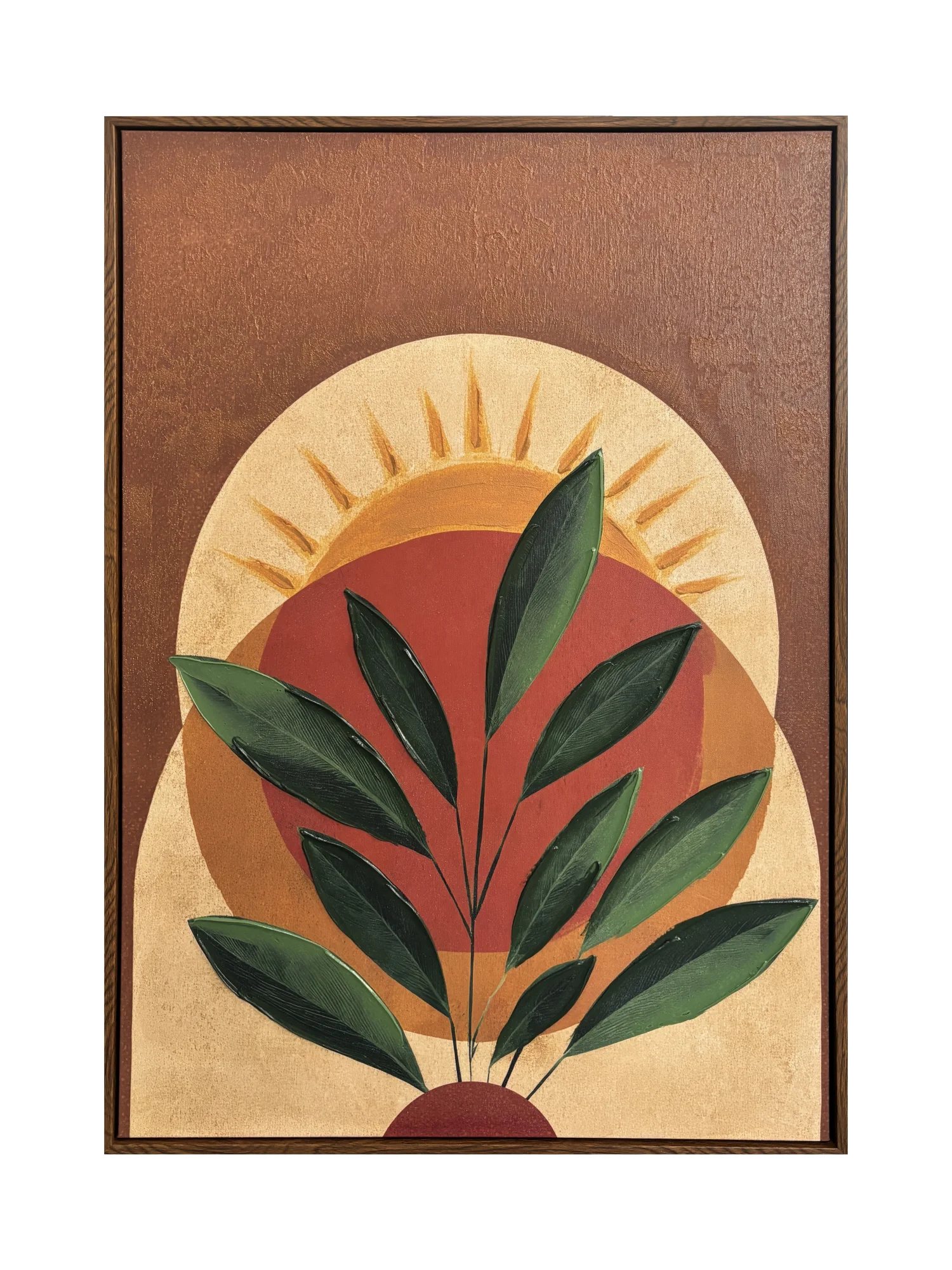 Cuadro decorativo impreso con retoques a mano en relieve. Accesorio original en colores intensos que aporta personalidad en cualquier rincón.