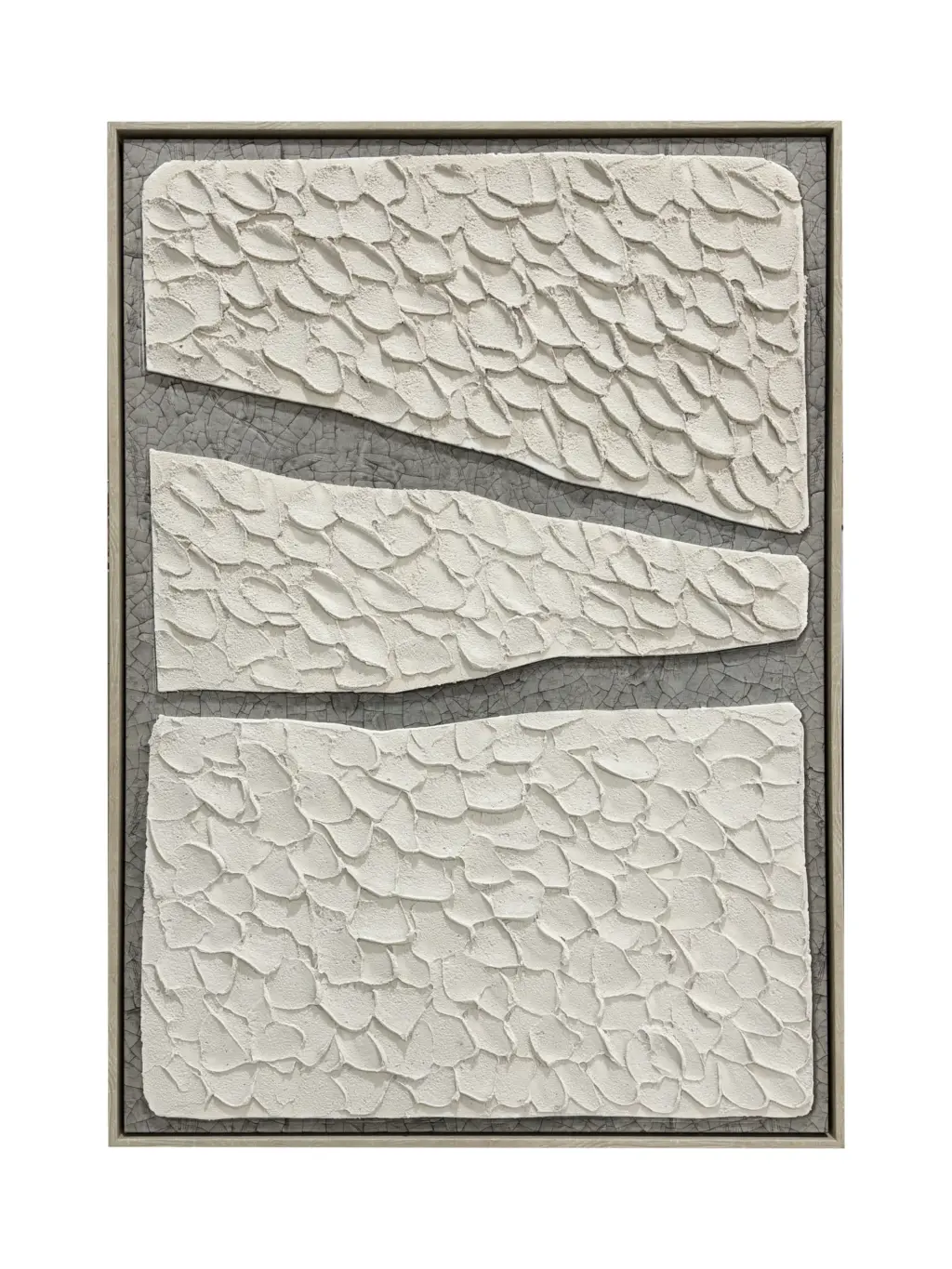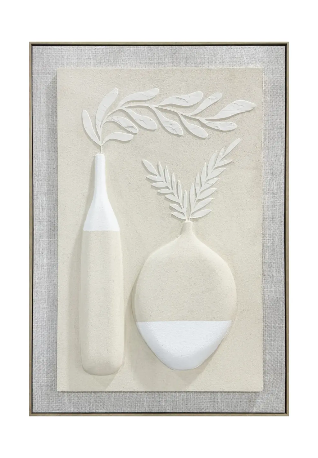 Cuadro de espuma de poliuretano con relieve 3D y un elegante acabado blanco roto. Su marco MDF en tono blanco y trasera reforzada lo convierten en una opción perfecta para complementar decoraciones modernas y sofisticadas. Herrajes incluidos.