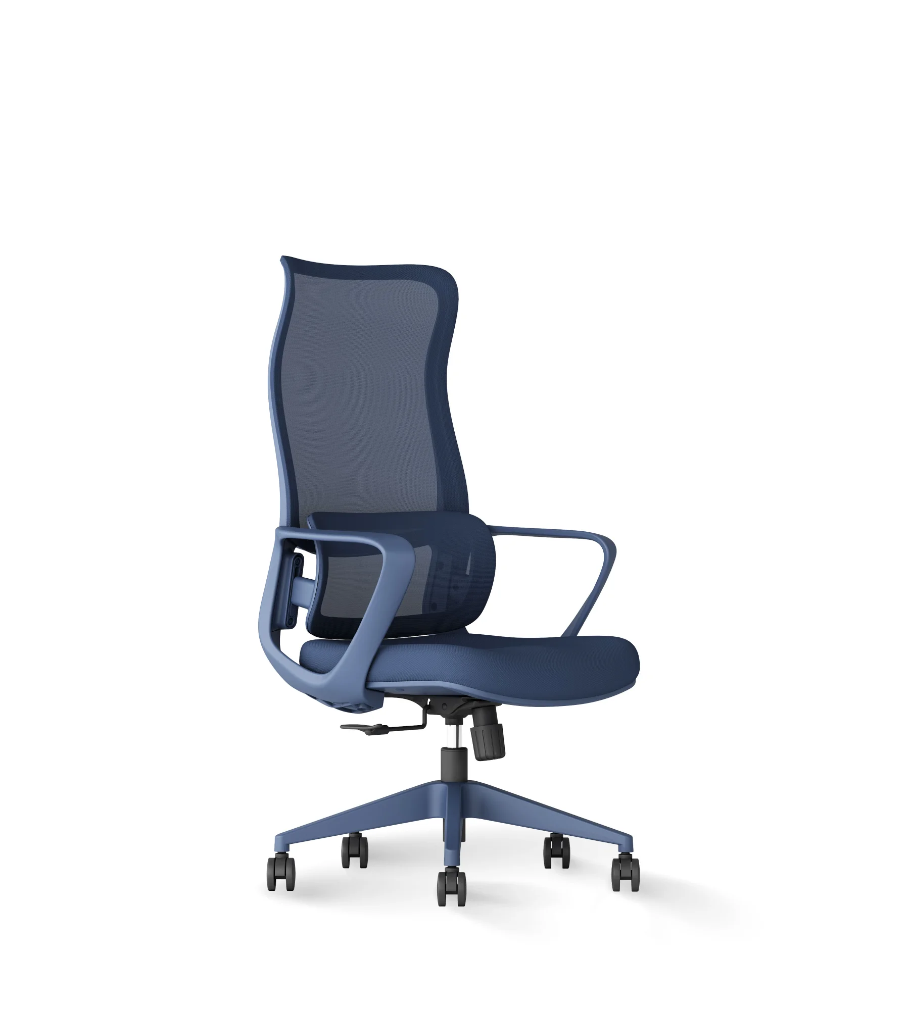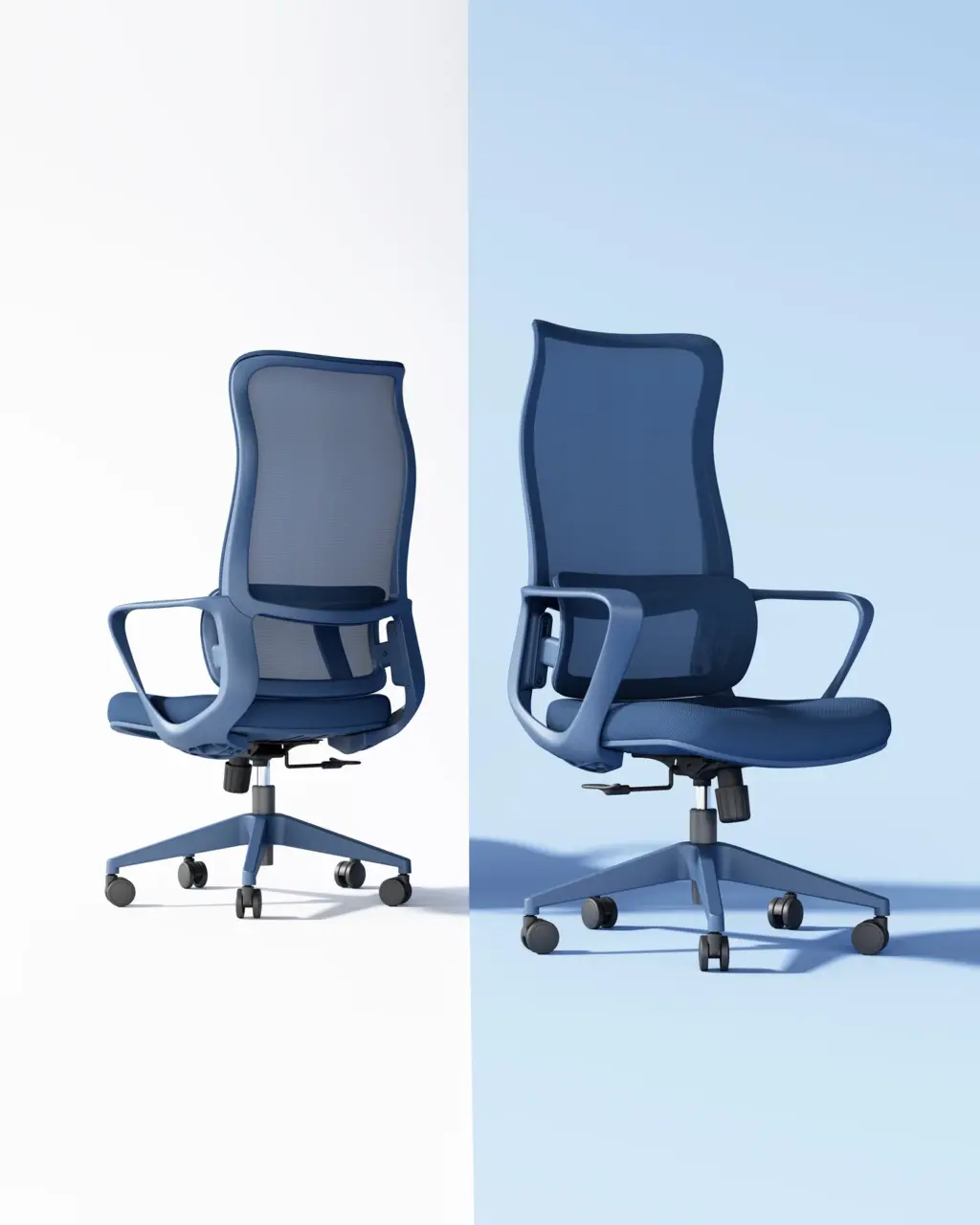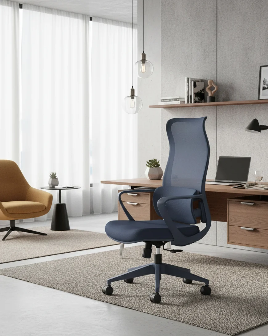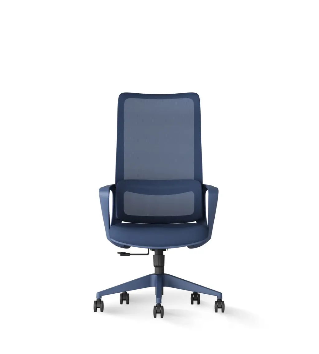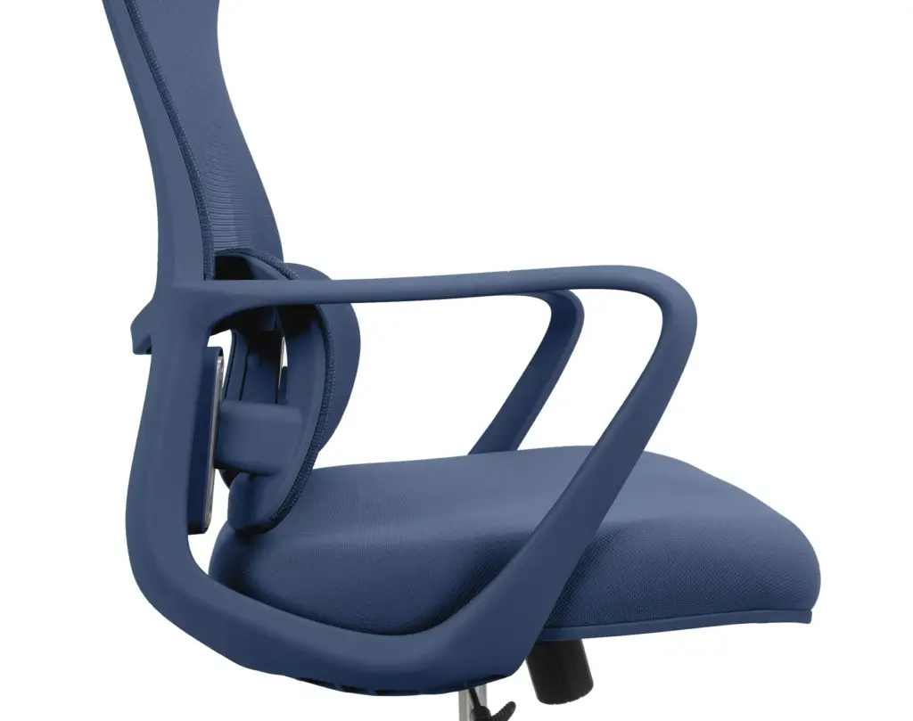 Esta silla de oficina en color verde destaca por su diseño moderno y distintivo, con un respaldo alto de malla transpirable que ofrece un soporte lumbar ajustable. Cuenta con ajuste de altura, reposabrazos integrados y una base de cinco ruedas para una movilidad suave.