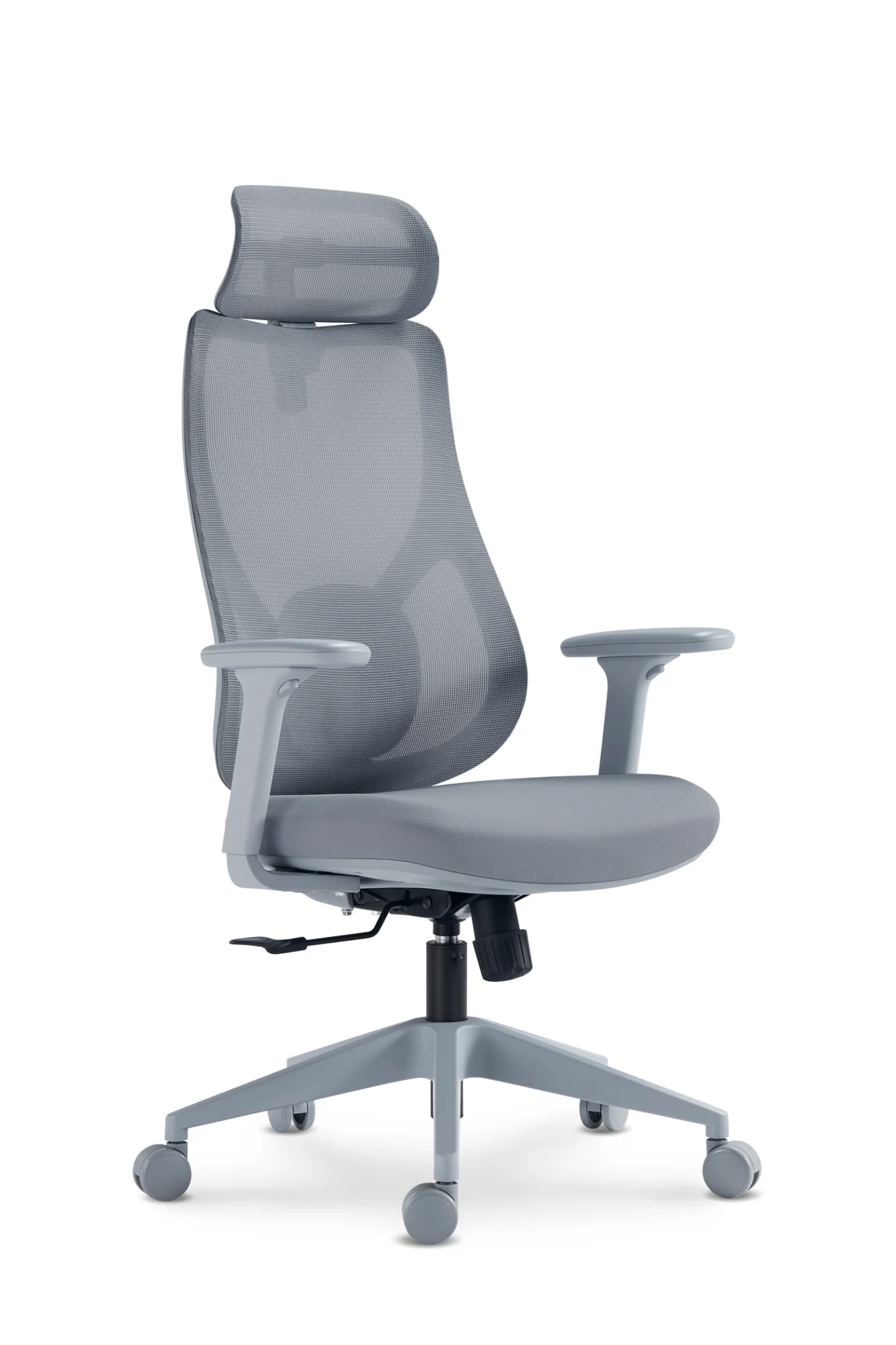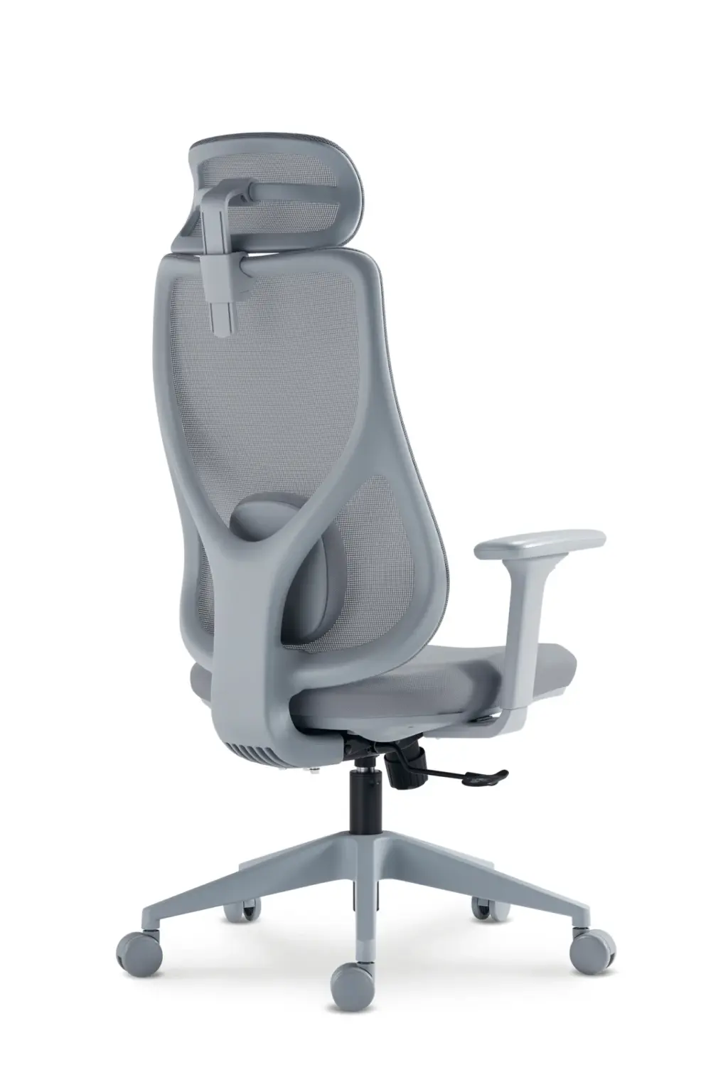 Esta silla profesional en color gris rompe con lo convencional gracias a su diseño vanguardista y estilizado, destacando por un reposacabezas independiente y un respaldo de malla con soporte lumbar dinámico. Es totalmente regulable en altura, incluye reposabrazos ergonómicos y una base reforzada que garantiza una estética moderna y una comodidad superior.